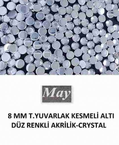 8 MM T.YUVARLAK KESMELİ ALTI DÜZ RENKLİ AKRİLİK-CRYSTAL