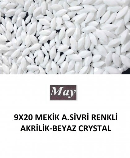 9X20 MEKİK ALTI SİVRİ RENKLİ AKRİLİK-BEYAZ CRYSTAL